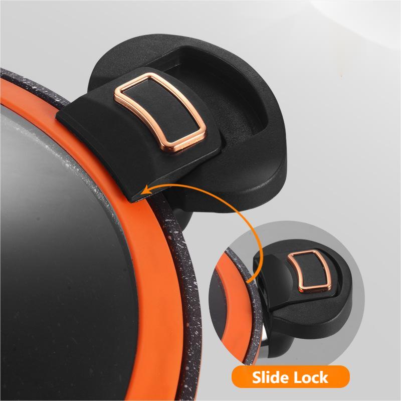 SLIDE-TO-LOCK DESIGN - The innovative slide-to-lock mechanism guarantees a secure seal, preserving flavors and nutrients while cooking. Enjoy peace of mind knowing your meals are cooked to perfection.